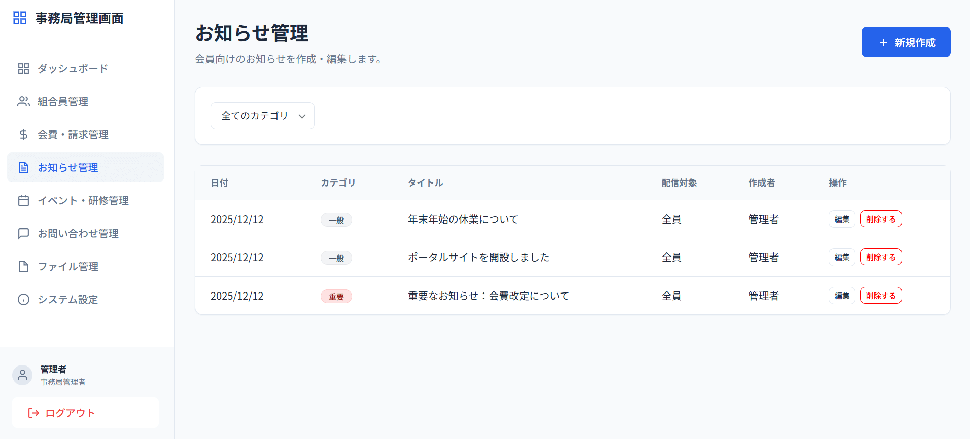 - お知らせ管理